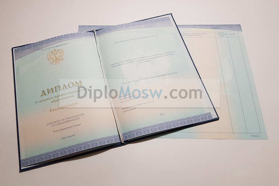Диплом: Полный комплект с обложкой и приложением, заполненный, как в ССУЗе